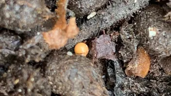Die anfangs lehmigen Kotpellets wurden schnell durch organisch, braune Ersetzt, nachdem sie ihren Verdauungstrakt dem Material entleert haben, dass sie vor dem Versand gefressen haben.